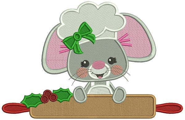 Cute Little Mouse Cook Filled Christmas Machine Embroidery Design Digitized Pattern