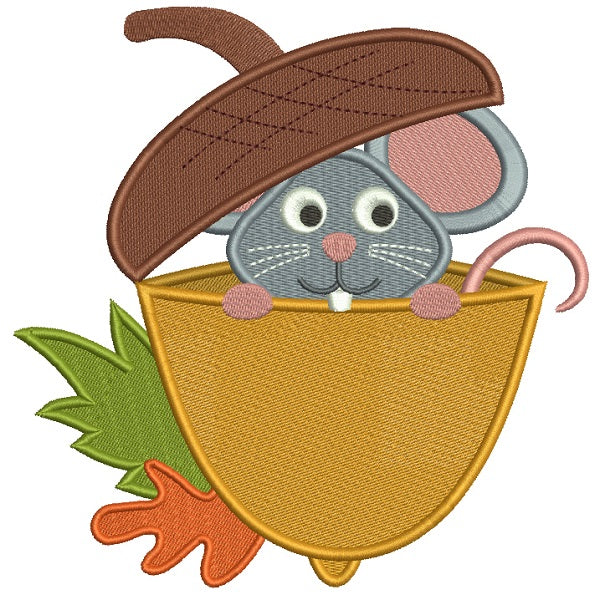 Cute Little Mouse Sitting Inside and Acorn Filled Machine Embroidery Design Digitized Pattern