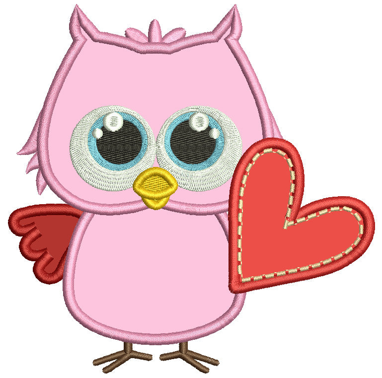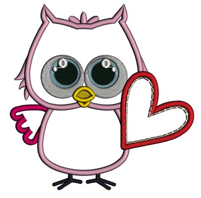 Cute Little Owl Holding Big Heart Valentine's Day Love Applique Machine Embroidery Design Digitized Pattern