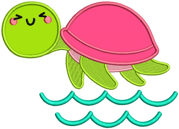 Cute Little Turtle With Waves Applique Machine Embroidery Design Digitized Pattern