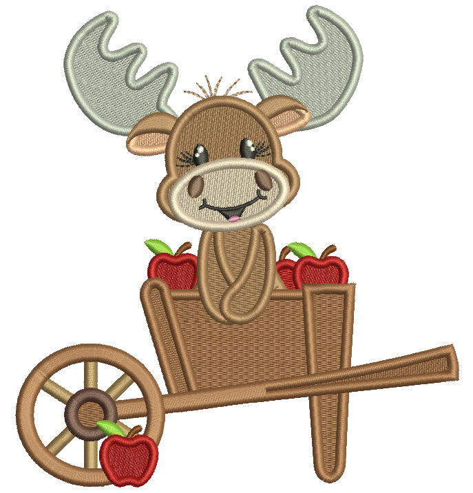 Cute Moose Sitting Inside Garden Cart Fall Filled Machine Embroidery Design Digitized Pattern