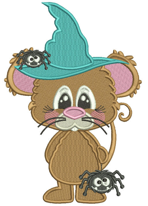 Cute Mouse Wizard With a Spider Halloween Filled Machine Embroidery Design Digitized Pattern