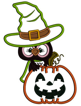 Cute Owl Wearing Wizard Hat Holding Pumpkin Applique Halloween Machine Embroidery Design Digitized Pattern