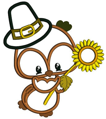Cute Owl With Sunflower and a Big Hat Applique Machine Embroidery Digitized Design Pattern