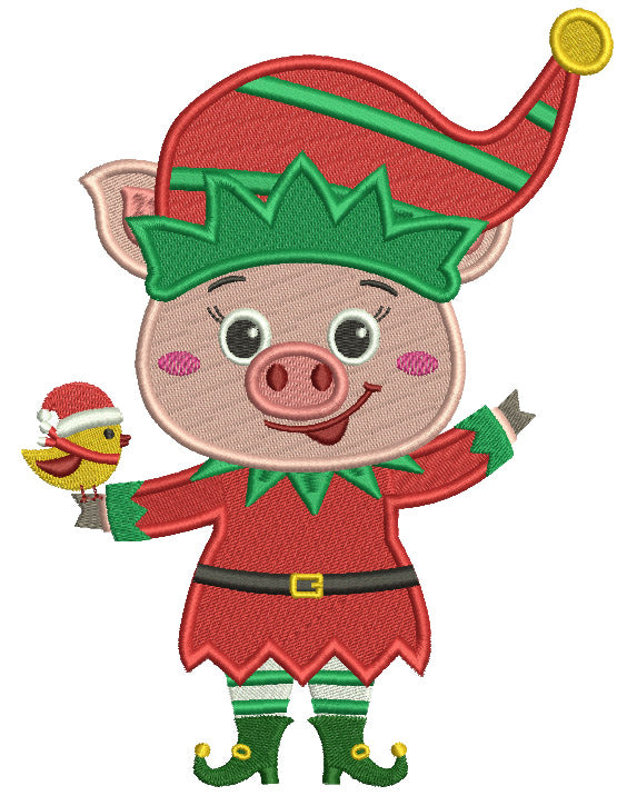 Cute Piggy Elf Christmas Filled Machine Embroidery Design Digitized Pattern