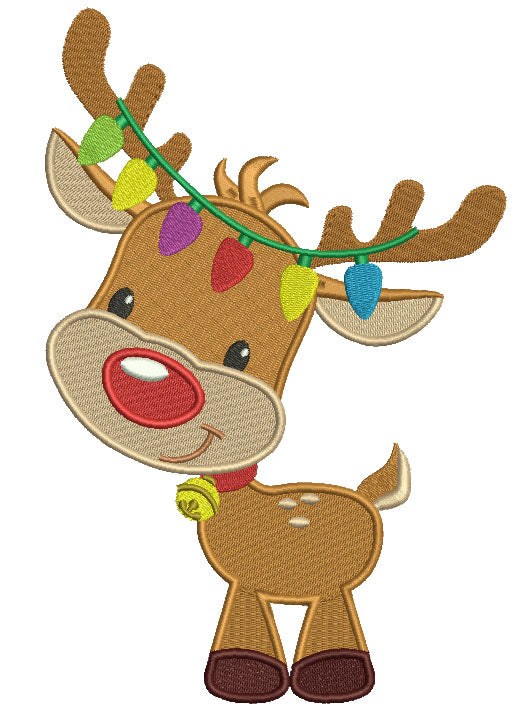 Cute Reindeer With Christmas Lights Filled Machine Embroidery Design Digitized Patter