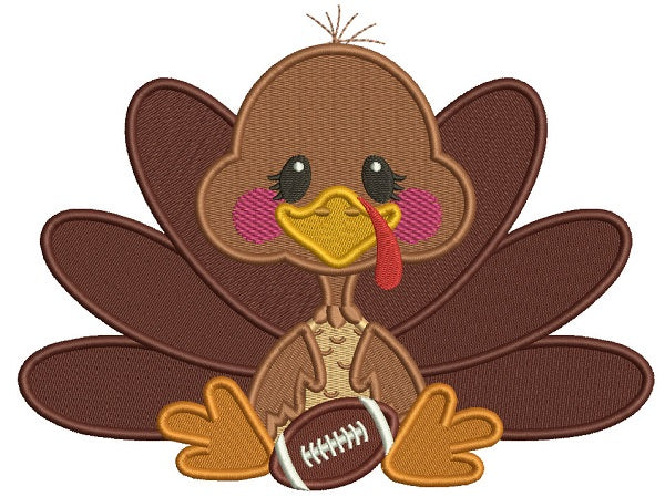 Cute Turkey With a Football Sports Fall Filled Thanksgiving Machine Embroidery Design Digitized Pattern