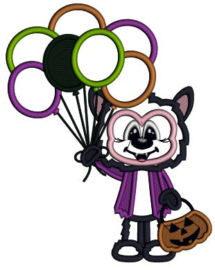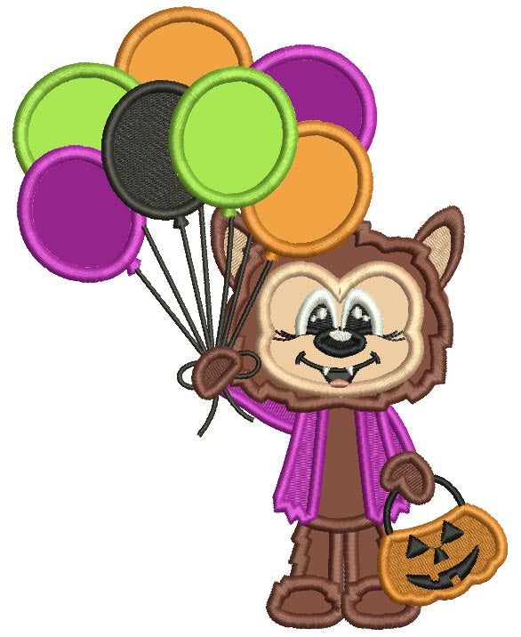 Cute Wolf Holding Balloons Halloween Applique Machine Embroidery Design Digitized Pattern