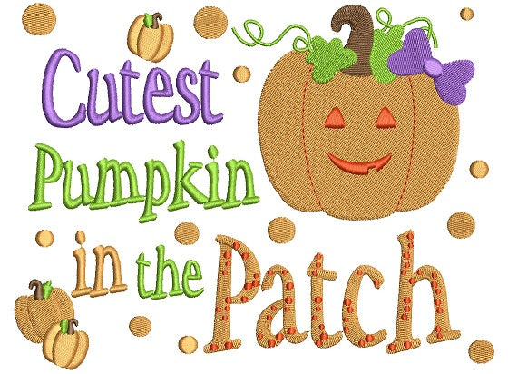 Cutest Pumpkin in the Patch Halloween Filled Machine Embroidery Design Digitized Pattern