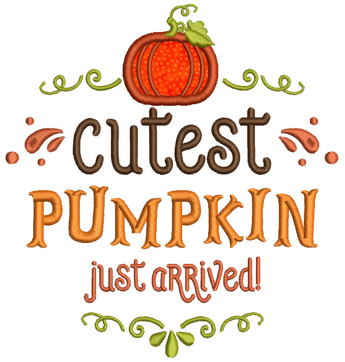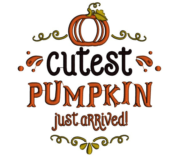 Cutest Pumpkin Just Arrived Applique Machine Embroidery Design Digitized Pattern
