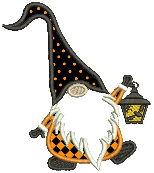 Dancing Gnome Holding Lantern Halloween Applique Machine Embroidery Design Digitized Pattern