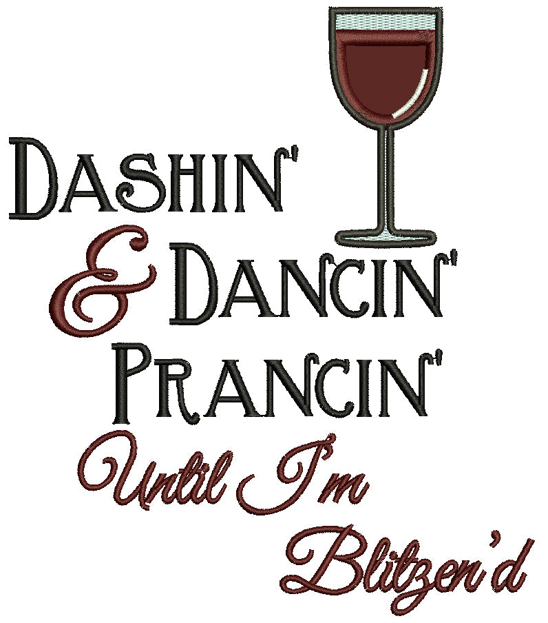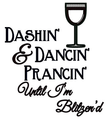 Dashin And Dancin Prancin Until I'm Blitzend Glass Of Wine Christmas Applique Machine Embroidery Design Digitized Pattern