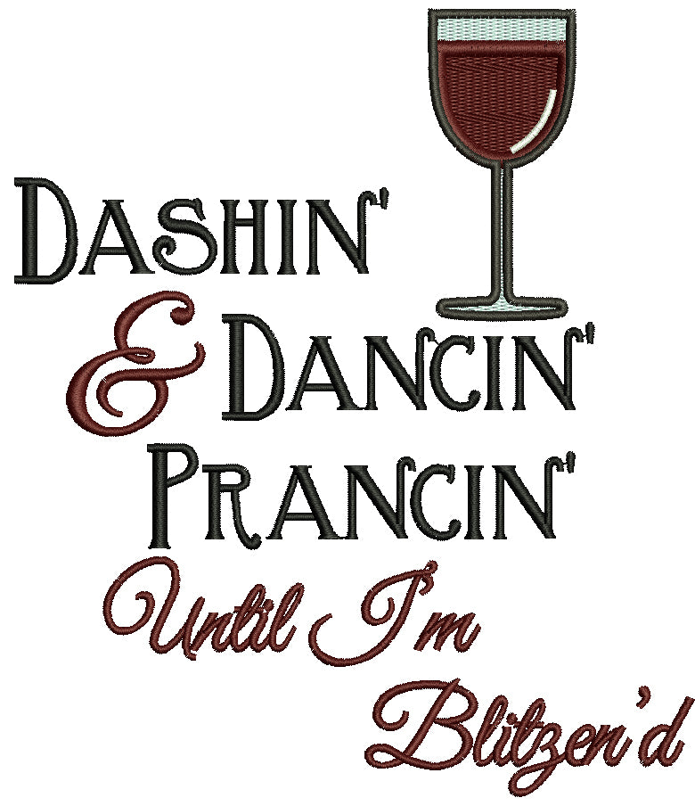 Dashin And Dancin Prancin Until I'm Blitzend Glass Of Wine Christmas Filled Machine Embroidery Design Digitized Pattern