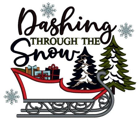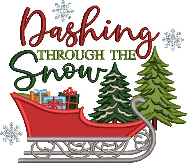 Dashing Through The Snow Christmas Sleigh Filled With Gifts Applique Machine Embroidery Design Digitized Pattern
