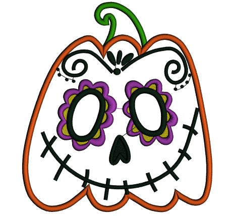 Day Of The Dead Sugar Skull Pumpkin Halloween Applique Machine Embroidery Design Digitized Pattern