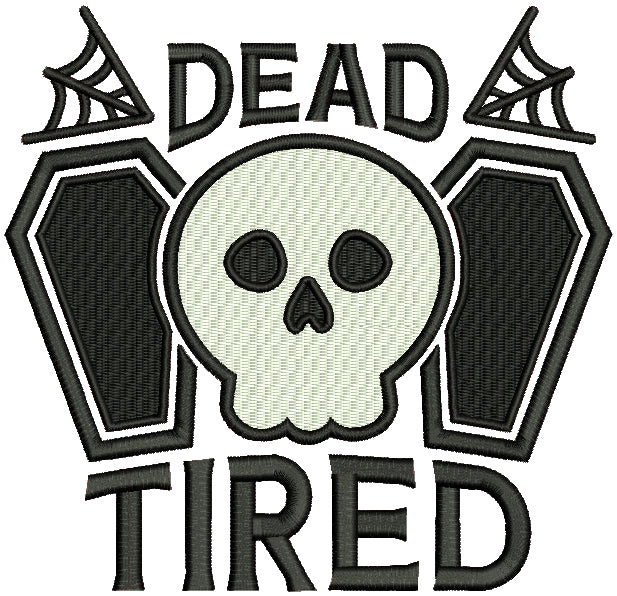 Dead Tired Skull And Coffins Halloween Filled Machine Embroidery Design Digitized Pattern