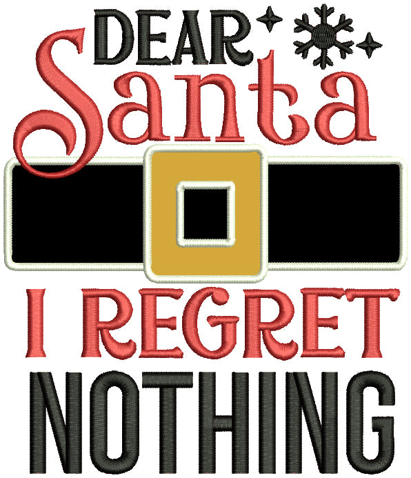 Dear Santa I Regret Nothing Christmas Applique Machine Embroidery Design Digitized Pattern
