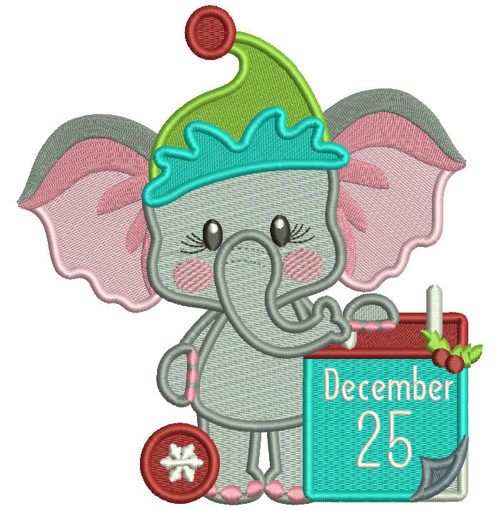 December 25th Cute Baby Elephant Christmas Filled Machine Embroidery Design Digitized Pattern