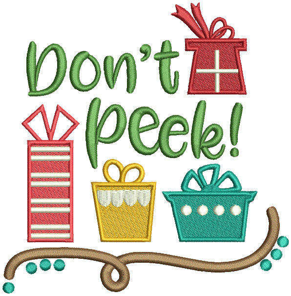 Don't Peek Santa's Presents Christmas Filled Machine Embroidery Design Digitized Pattern