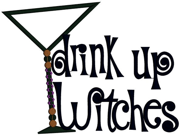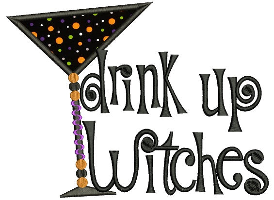 Drink Up Witches Halloween Applique Machine Embroidery Design Digitized Pattern