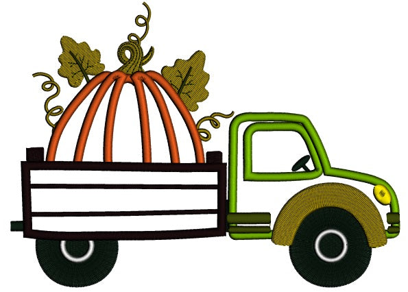 Dump Truck With Pumpkin Applique Machine Embroidery Design Digitized Pattern