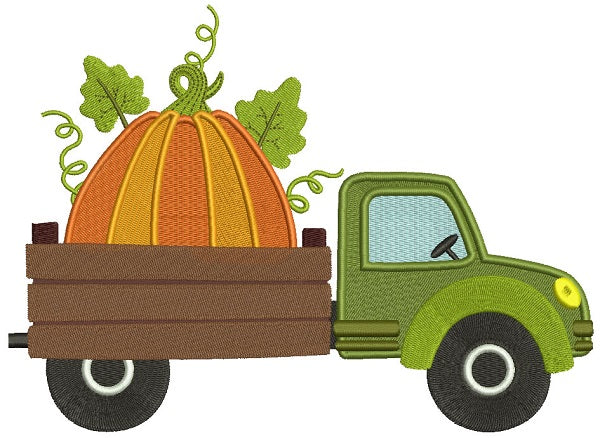 Dump Truck With Pumpkin Filled Machine Embroidery Design Digitized Pattern