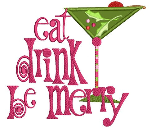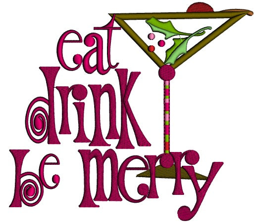 Eat Drink and Be Merry Christmas Applique Machine Embroidery Design Digitized Pattern