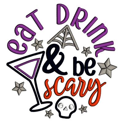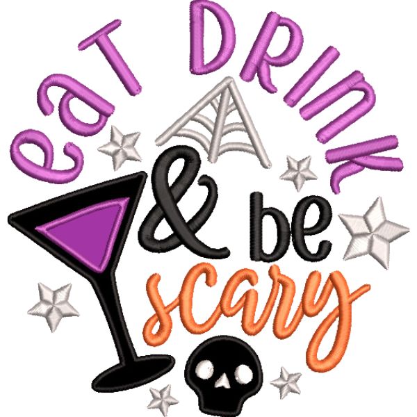 Eat Drink And Be Scary Halloween Applique Machine Embroidery Design Digitized Pattern