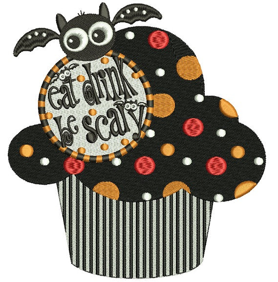Eat Drink Be Scary Black Owl on a Cupcake Halloween Filled Machine Embroidery Design Digitized Pattern