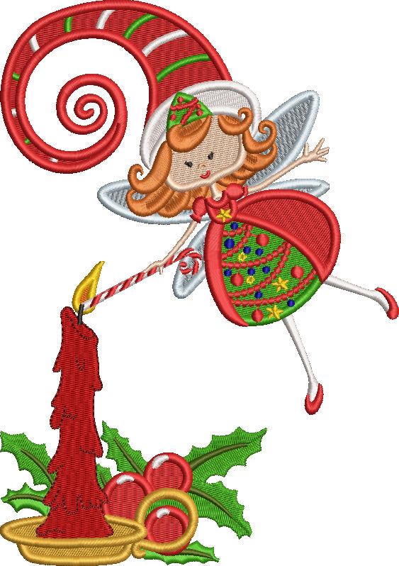 Fairy Lighting The Candle Christmas Filled Machine Embroidery Design Digitized Pattern