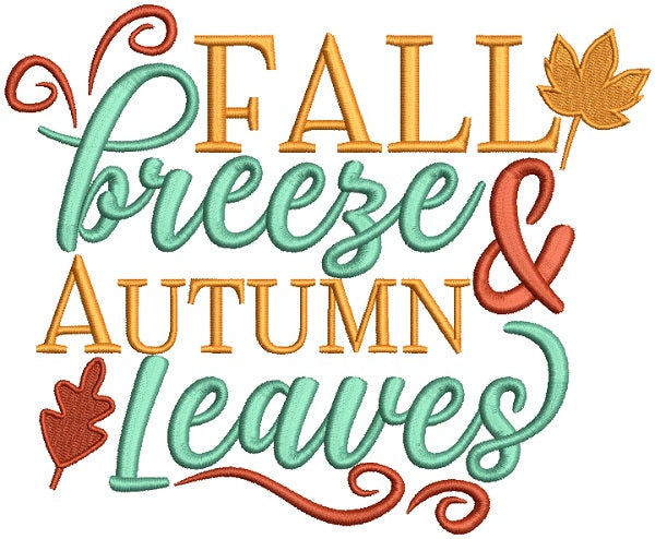 Fall Breeze And Autumn Leaves Fall Thanksgiving Filled Machine Embroidery Design Digitized Pattern
