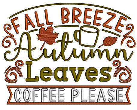 Fall Breeze Autumn Leaves Coffee Please Applique Machine Embroidery Design Digitized Pattern