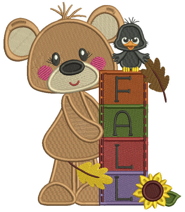 Fall Cute Bear With a Crow Filled Machine Embroidery Design Digitized Pattern