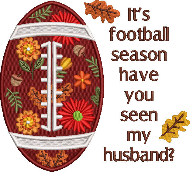 It's Football Season Have You Seen My Husband Sports Filled Machine Embroidery Design Digitized Pattern - 16414