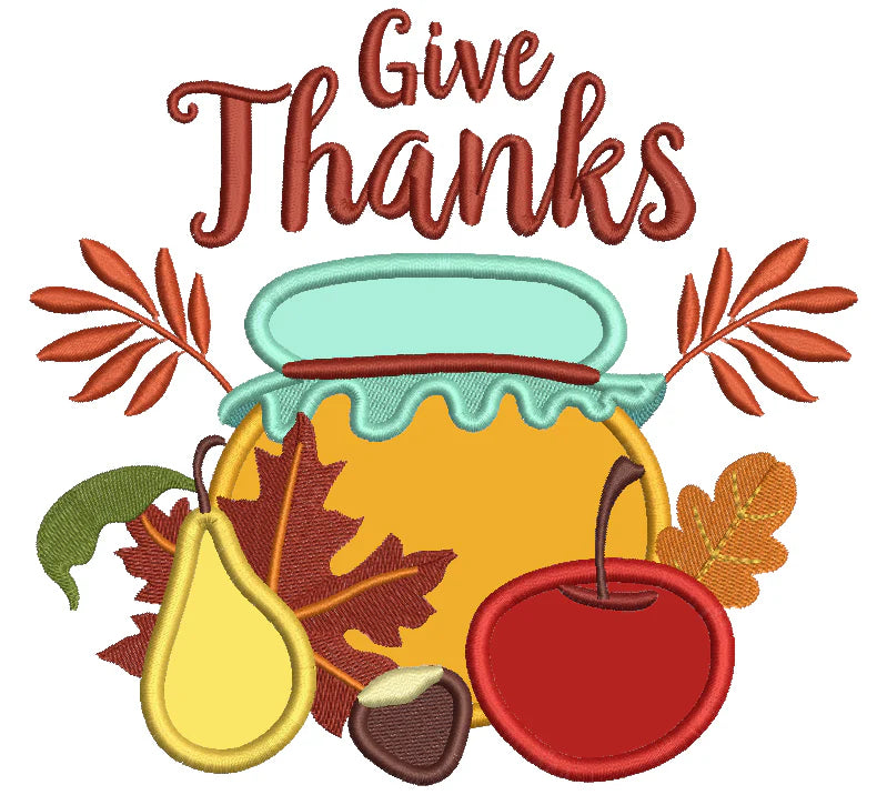 Give Thanks Fruit Jam And Fall Flowers Applique Machine Embroidery Design Digitized Pattern - 12476