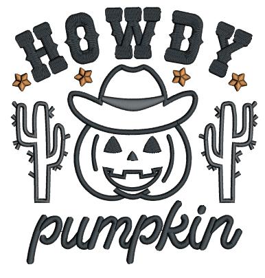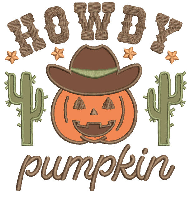 Howdy Pumpkin Applique Filled Machine Embroidery Design Digitized Pattern - 16605