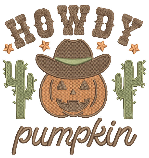 Howdy Pumpkin Fall Filled Machine Embroidery Design Digitized Pattern - 16604