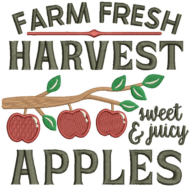 Farm Fresh Harvest And Sweet Juicy Apples Filled Machine Embroidery Design Digitized Pattern