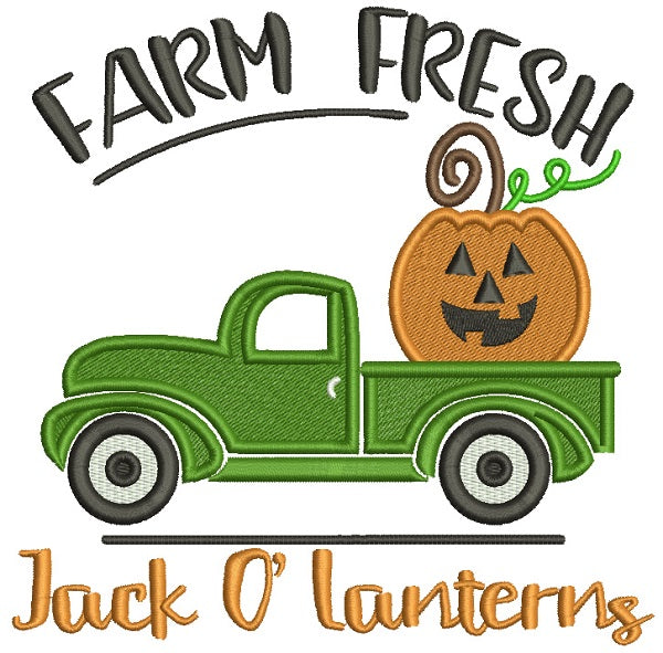 Farm Fresh Jack O'lanterns Truck With Pumpkin Filled Halloween Machine Embroidery Design Digitized Pattern