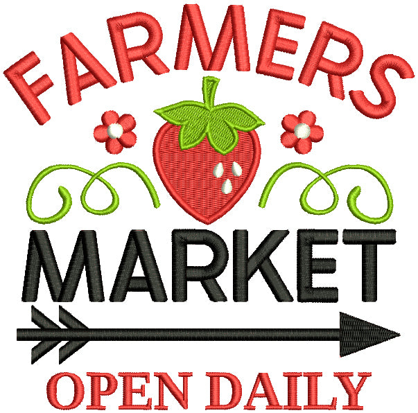 Farmers Market Open Daily Strawberry And Flowers Filled Machine Embroidery Design Digitized Pattern