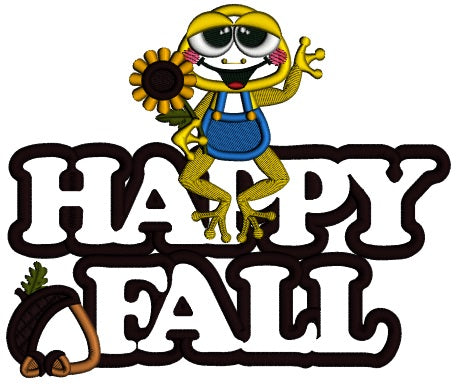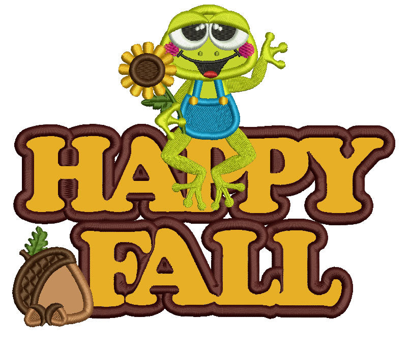 Froggy With Sunflower Happy Fall Applique Machine Embroidery Design Digitized Pattern