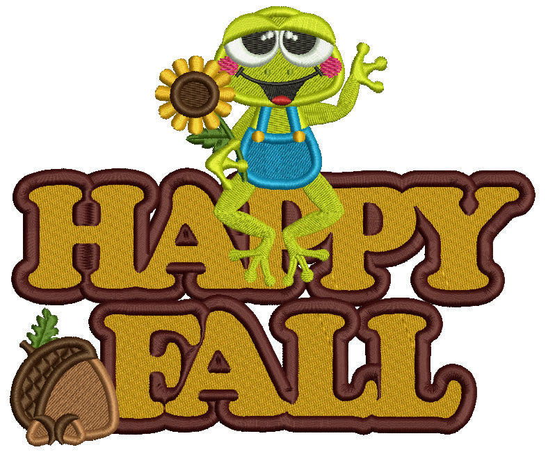 Froggy With Sunflower Happy Fall Filled Machine Embroidery Design Digitized Pattern