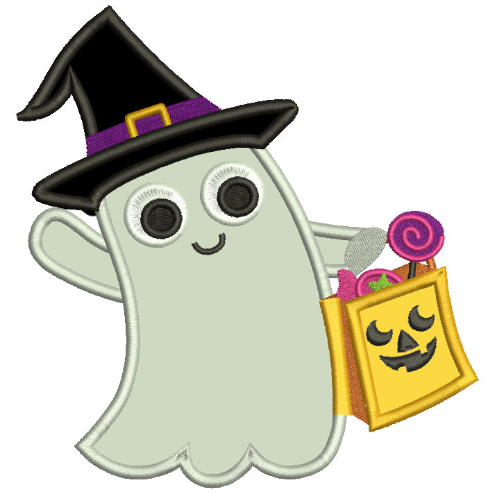Ghost Wearing Witch Hat Halloween Applique Machine Embroidery Digitized Design Pattern