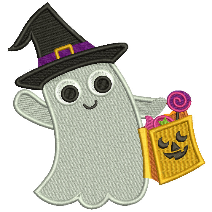 Ghost Wearing Witch Hat Halloween Filled Machine Embroidery Digitized Design Pattern