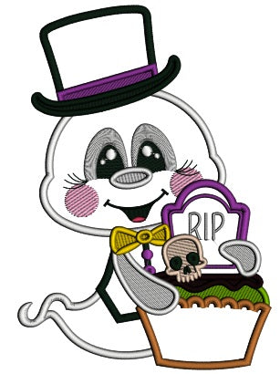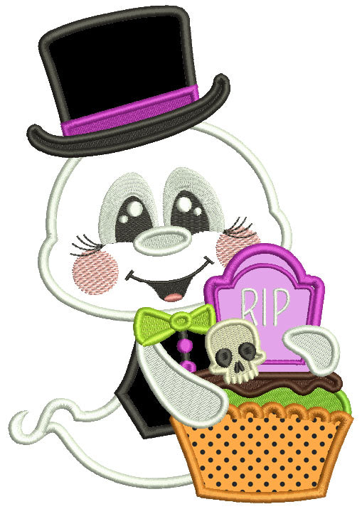 Ghost With Big Hat Holding Halloween Basket Applique Machine Embroidery Design Digitized Pattern