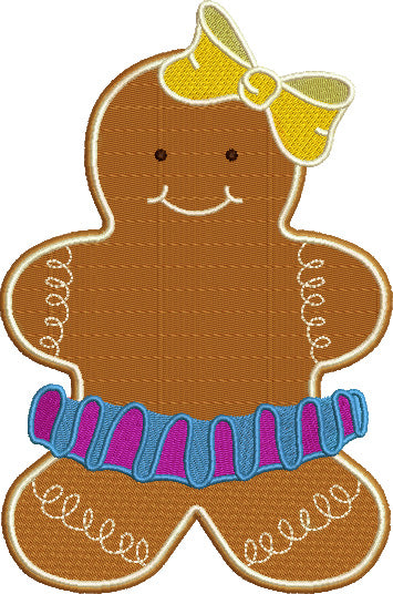 Ginger Bread Girl Christmas Filled Machine Embroidery Digitized Design Pattern