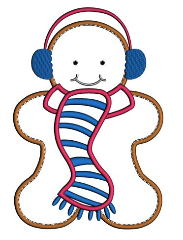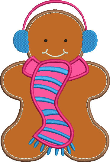 Ginger Bread Man With a Scarf Christmas Applique Machine Embroidery Digitized Design Pattern