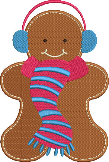 Ginger Bread Man With a Scarf Christmas Filled Machine Embroidery Digitized Design Pattern