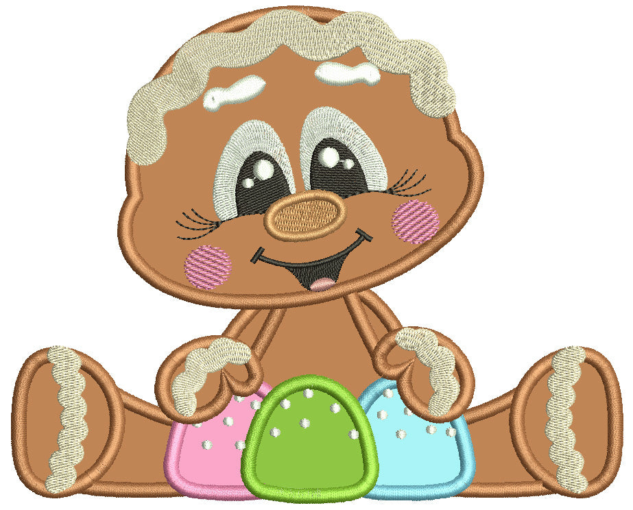 Gingerbread Baby With Candy Christmas Applique Machine Embroidery Design Digitized Pattern