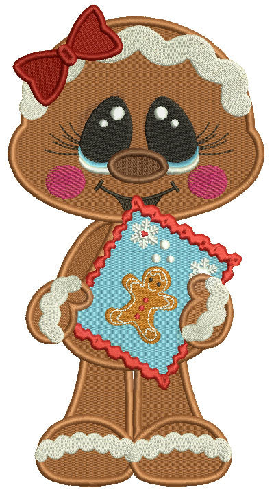 Gingerbread Girl Holding a Book Christmas Filled Machine Embroidery Design Digitized Pattern